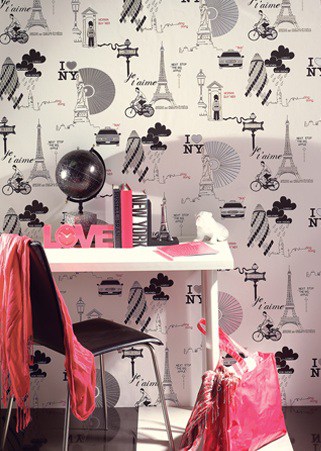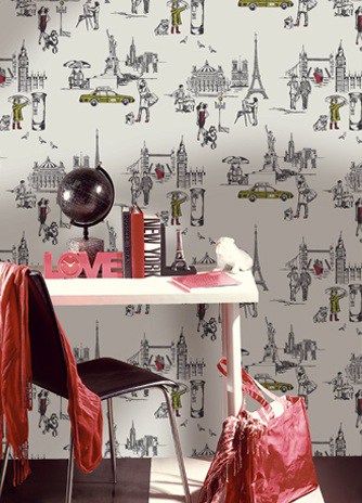 And avid travelers may well be interested in these beautiful papers called La Vie Ordinaire and City which feature famous landmarks from London, Paris and New York . Particularly during a recession, when most of us struggle to find the money for that much-needed getaway, this wallpaper is perfect for inciting many a day-dream about far-flung cities and adventures abroad. I’d actually quite like to have these paper in a home library to add to the escapist element.