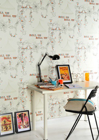 I also love this circus-inspired paper called Showtime. It brings such an element of fun to the room and I think a child’s bedroom or nursery would be a really nice place to have this paper. It would be a great theme and such fun to accessorize the room. In fact I also recently came across the most amazing circus-themed kids bedroom designed by American stylist Kate Dixon, the details of which you can see here on her blog.